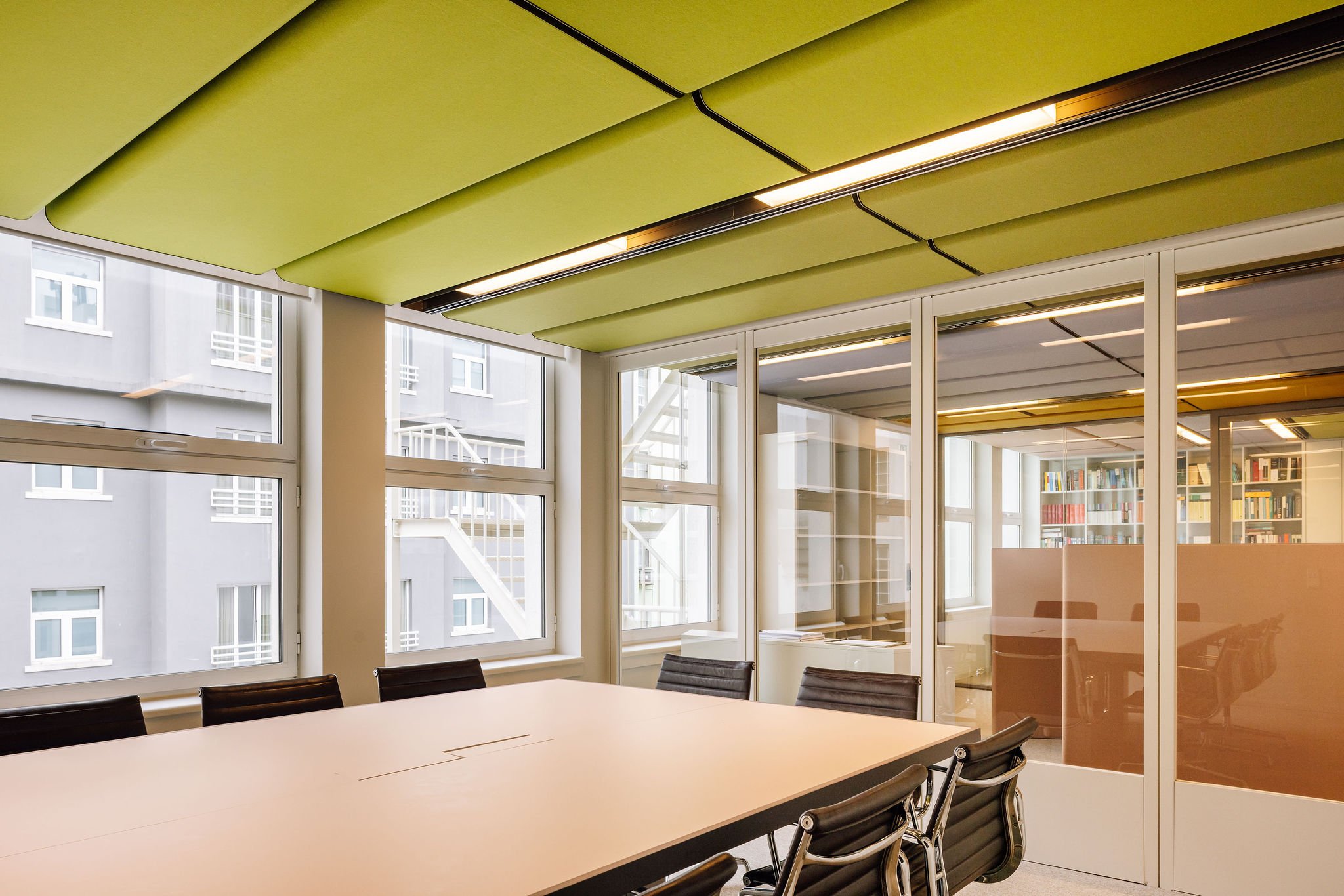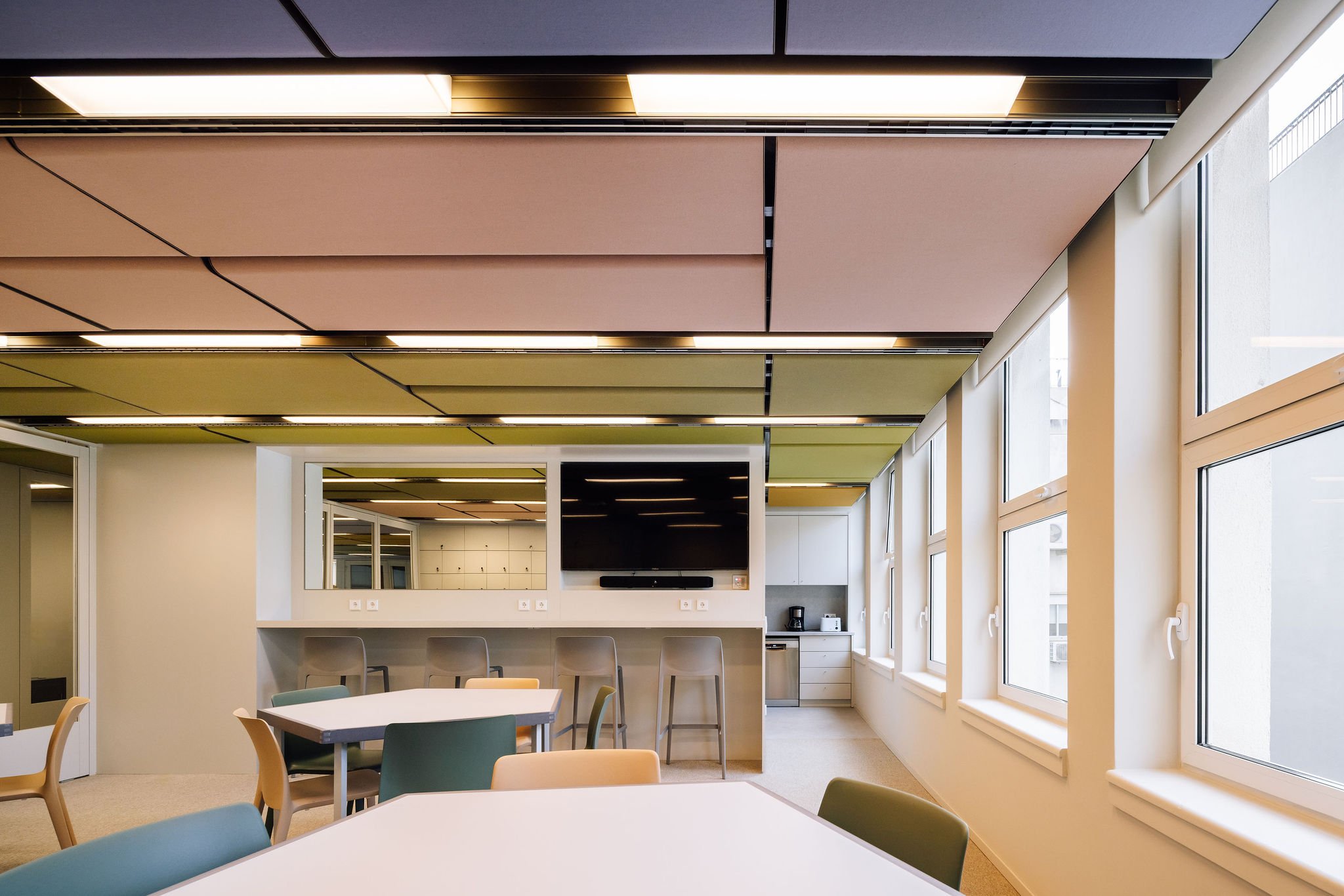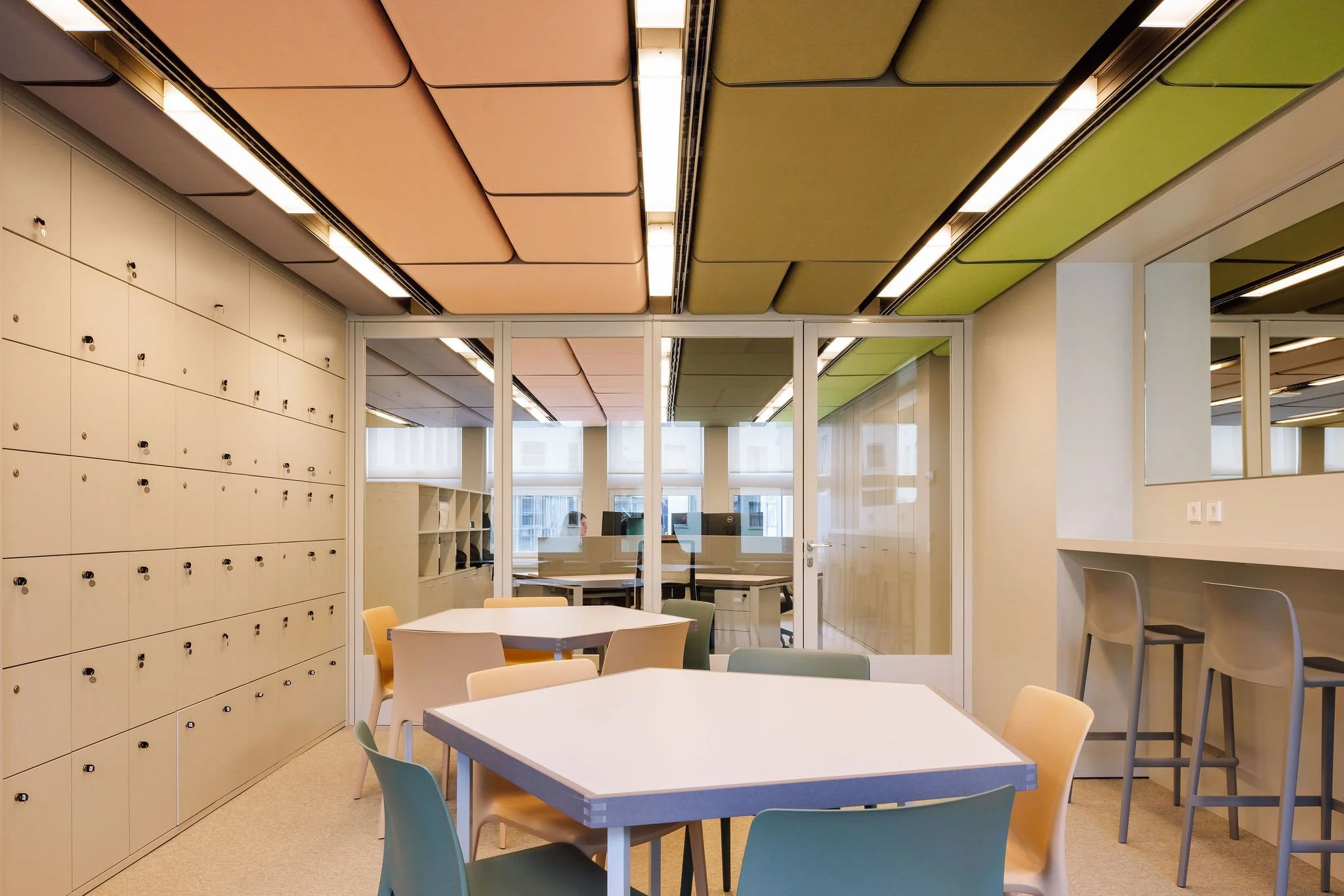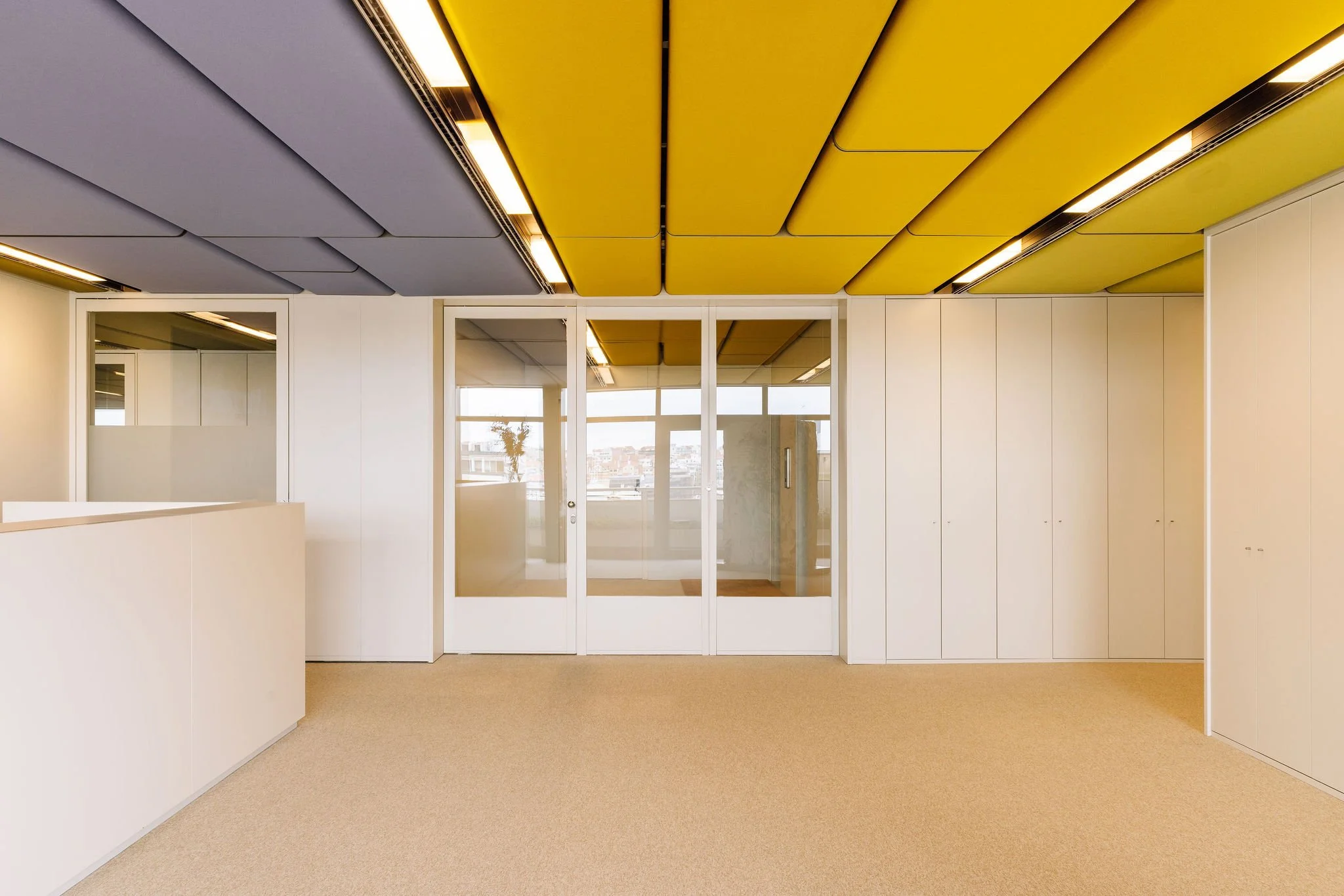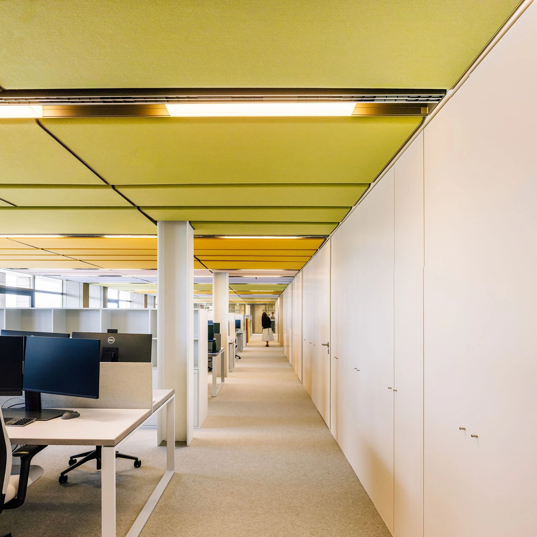 En la nueva oficina de CS’Advogados en Lisboa, construida por Huître y diseñada por el estudio Bak Gordon Arquitectos, las soluciones de BAMER contribuyeron a materializar un proyecto único de 1.300 m², distribuido por las plantas 7 y 8 del edificio 249, en la Avenida da Liberdade. BAMER suministró las mamparas y carpinterías, pero también el techo especial, el verdadero elemento icónico del espacio. Compuesto por 700 paneles de alta precisión constructiva, revestidos en tela de burel en cinco tonos contemporáneos, el techo aporta identidad, textura y sofisticación a todo el entorno de trabajo.