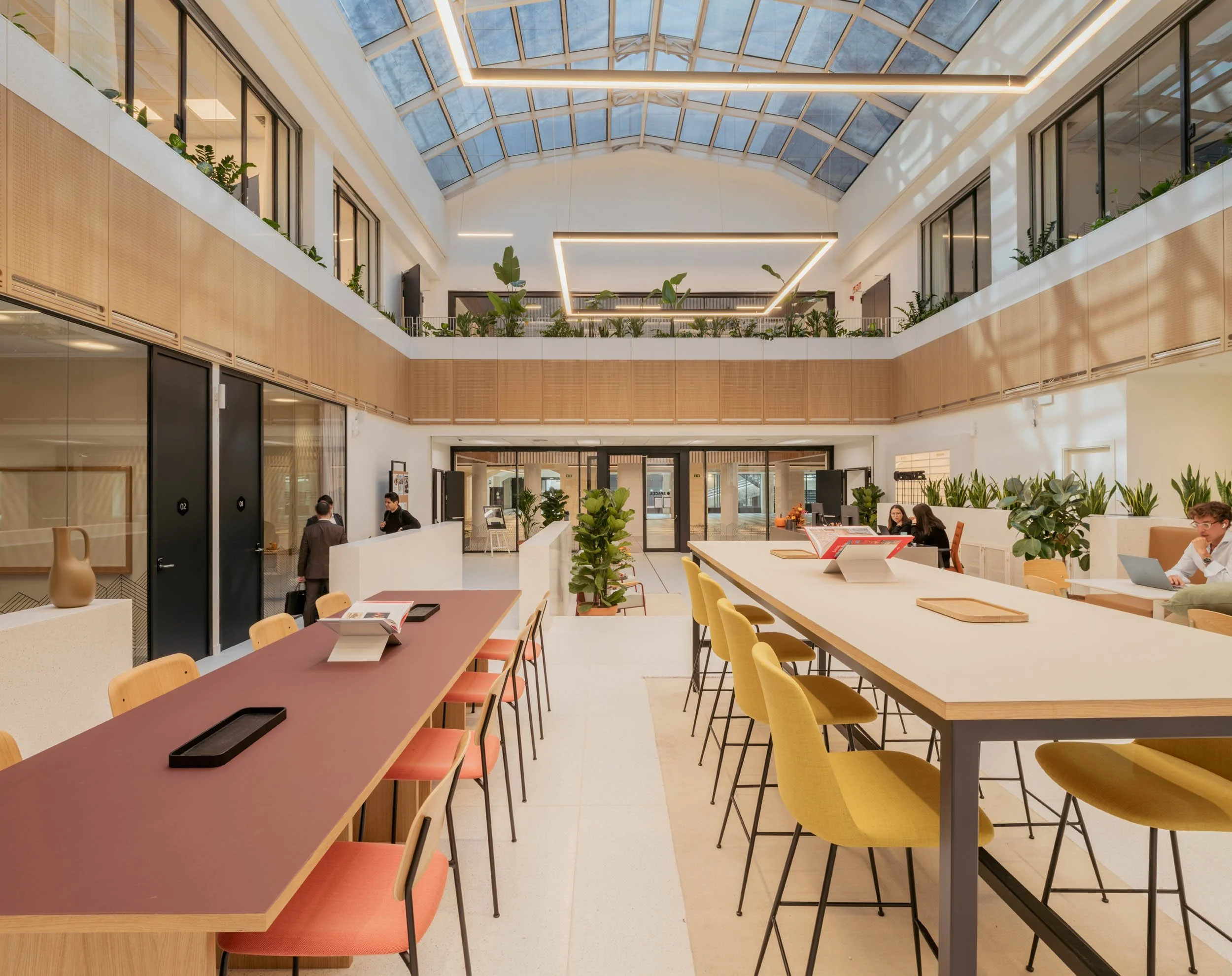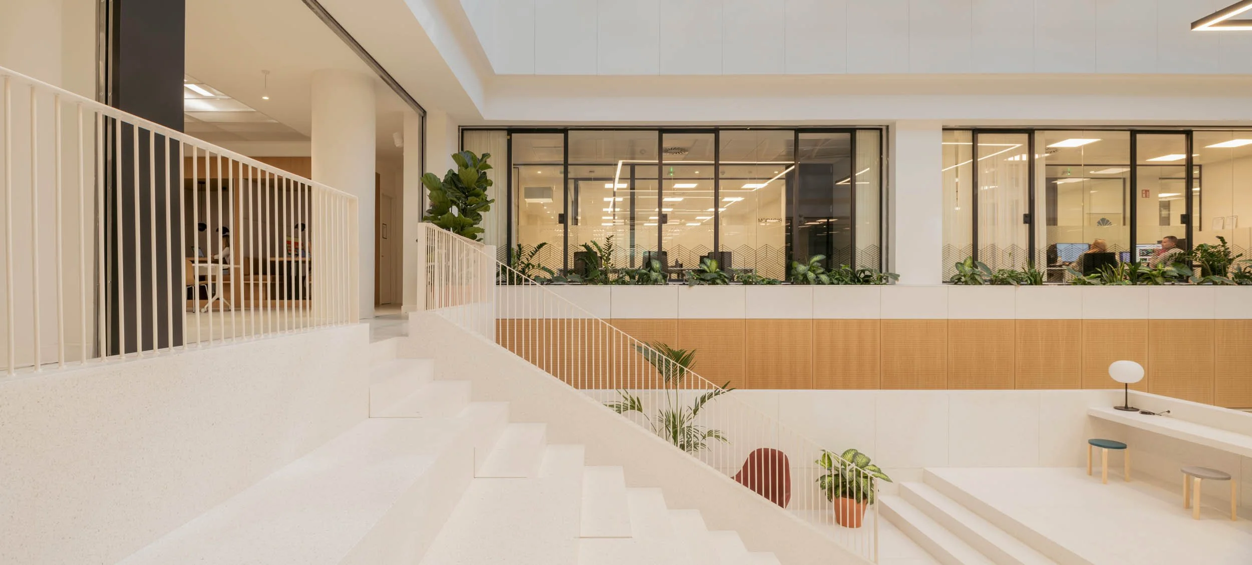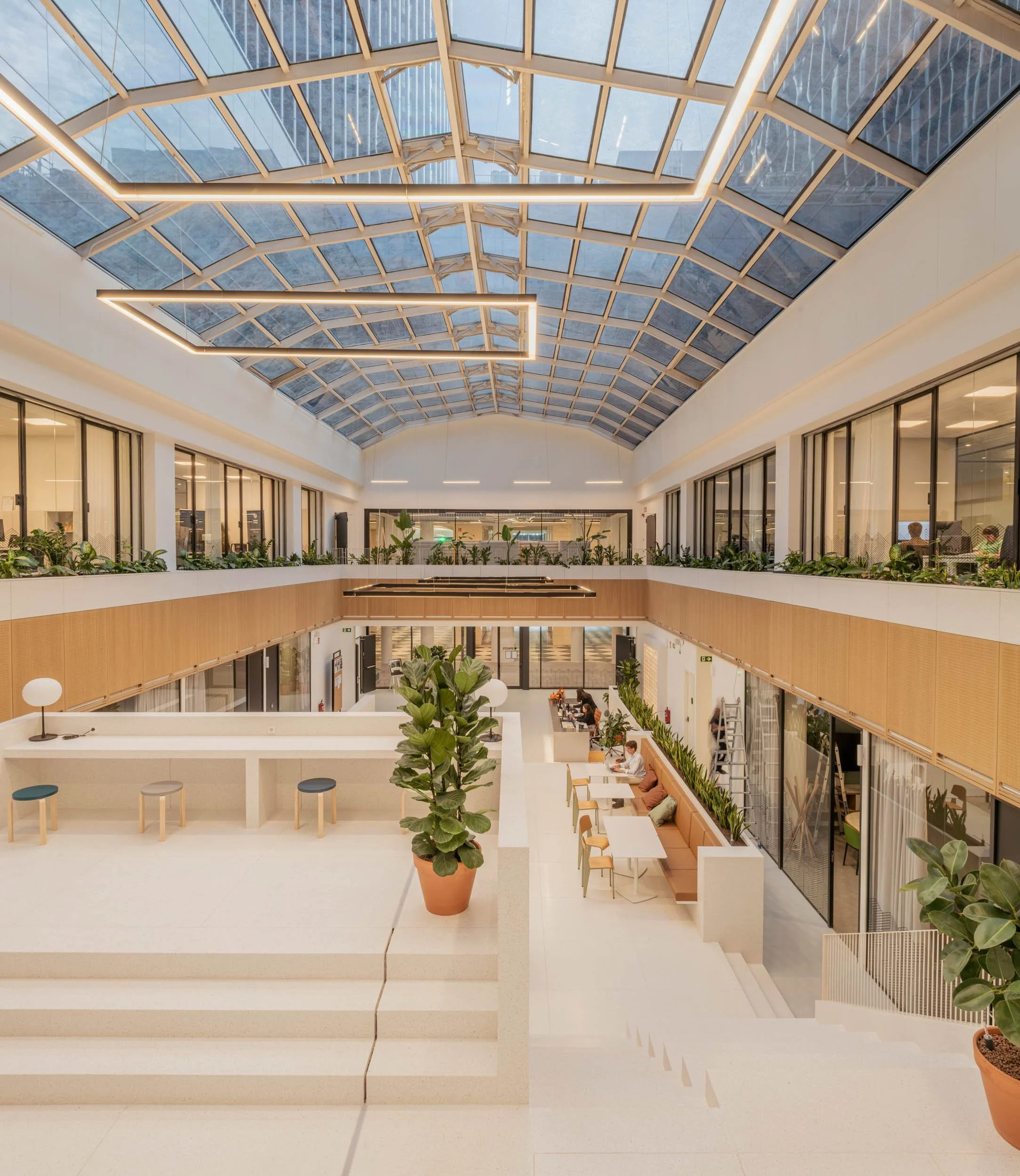 Desarrollado por Constructora Sanjose y diseñado por Monochrome Estudio en colaboración con Savills, este espacio de 12.500 m² destaca por su extraordinaria luminosidad natural, la selección de materiales premium y soluciones arquitectónicas de gran impacto.